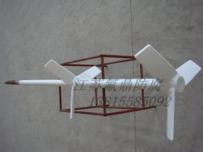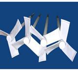 有平槳式和斜槳式兩種。平槳式攪拌器由兩片平直槳葉構成。槳葉直徑與高度之比為 4~10,圓周速度為1.5~3m/s,所產生的徑向液斜槳式攪拌器流速度較小。斜槳式攪拌器(圖4)的兩葉相反折轉45°或60°,因而產生軸向液流。槳式攪拌器結構簡單,常用于低粘度液體的混合以及固體微粒的溶解和懸浮。