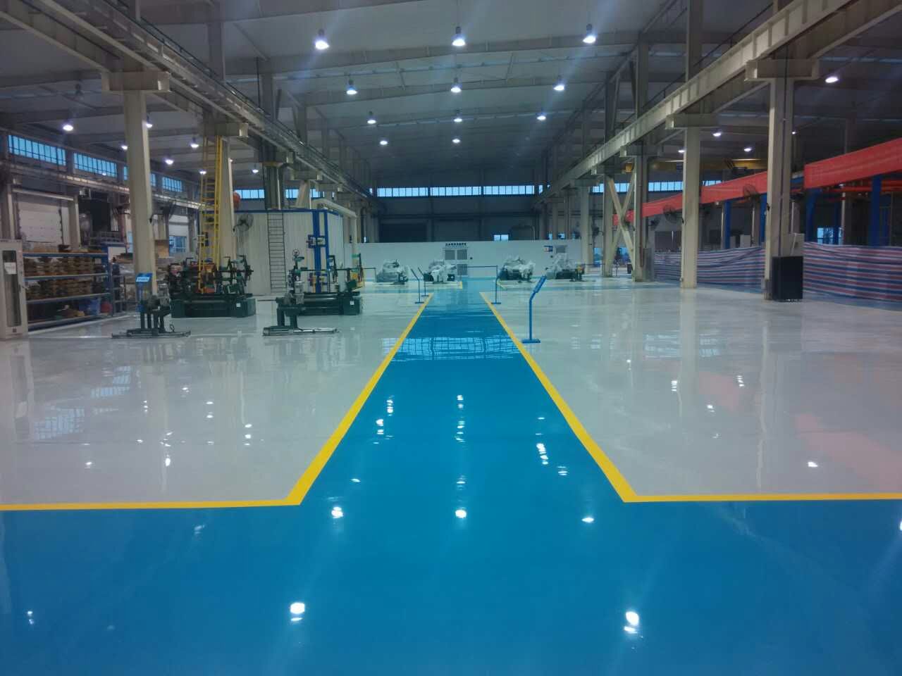 ⑥環(huán)氧自流平面涂施工:用環(huán)氧樹脂自流平面漆進(jìn)行面涂施工,面涂施工采用帶齒刮板刮涂施工。固化后可達(dá)鏡面效果,無(wú)味、無(wú)毒、無(wú)放射性、防腐蝕、防油滲,確保完工后的地坪顏色均勻、無(wú)泛色、無(wú)裂縫、無(wú)起皮、附著力強(qiáng)。