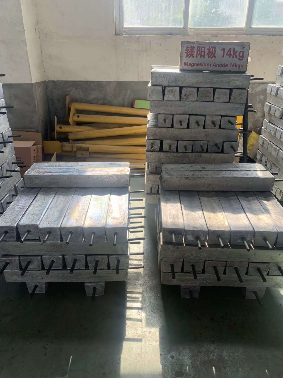 我公司生產的鎂合金采用國標的原材料來生產 陽極電位負 單位質量發(fā)生電量大 是理想的幅牲陽極材料 適用于土壤 淡水及海水等介質中的金屬構筑物的陰極保護 例如石油燃氣管道 儲罐 熱水交換露 冷凝器等等 該產品具有以下特點 比重小 電位較負 對鐵的驅動電壓高 電流效率低 特別運用于高電阻率介質中 鎂合金犧...