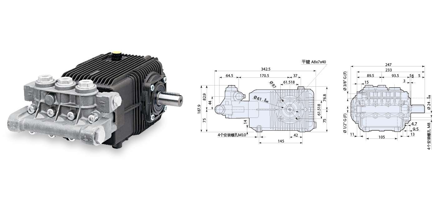 系列 高壓柱塞泵特點 大流量三缸水平柱塞泵 高強度 無氣孔鍛壓銅泵頭 表面鍍鎳 確保水泵安全性及穩(wěn)定性 整體實心加厚陶瓷柱塞 確保超高強度 運轉溫度 不銹鋼球面單向閥設計 大大提高流體力學效率 雙水封密封系統(tǒng) 配合水封限位圈和低壓回水空間設計 泵體曲軸箱采用高強度鋁合金材質及加大尺寸底座 曲軸由超強...