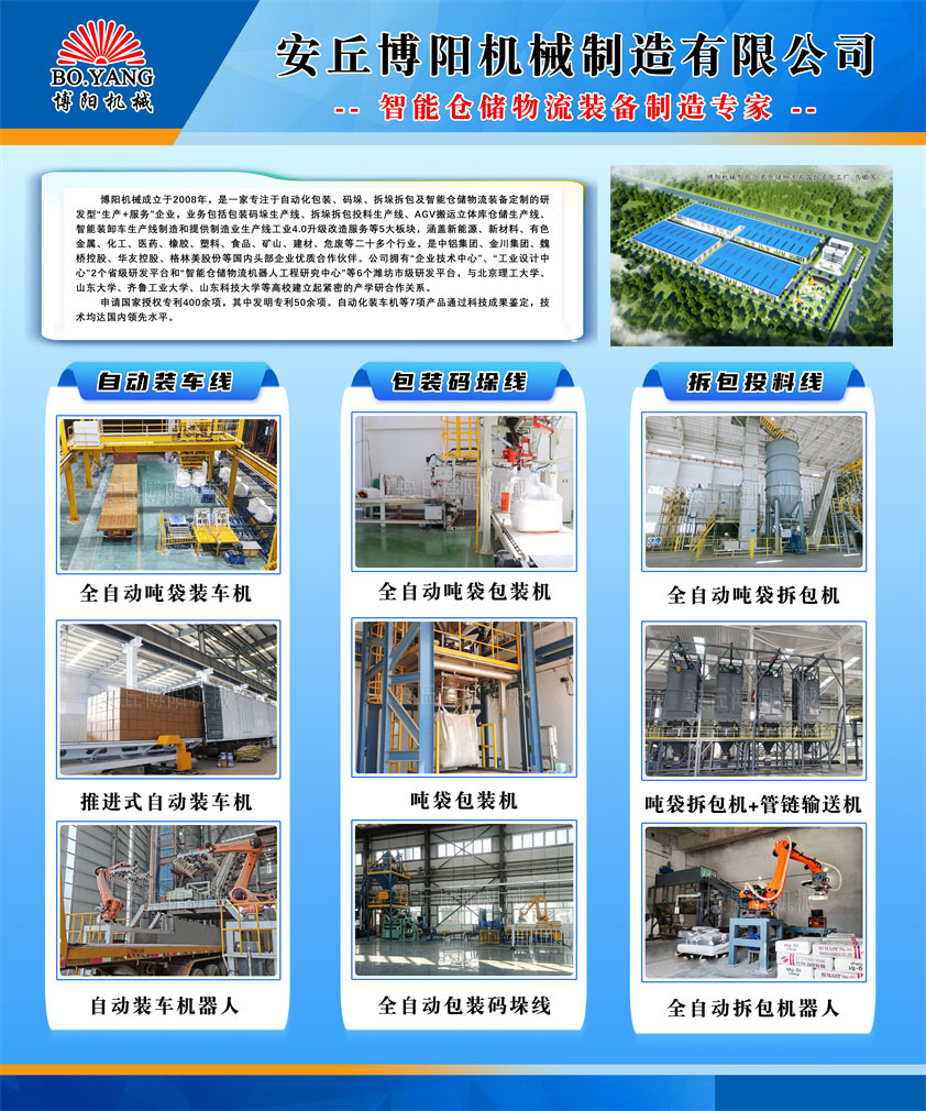 安丘博陽機械生產的純堿全自動噸袋包裝裝車生產線主要針對新材料、新能源、非金屬礦粉、化工原料等粉體和顆粒狀物料進行設計,廣泛應用于建材、化工、糧食、飼料、礦產等行業。全自動噸包包裝裝車生產線不僅可以提高包裝裝車效率,還可以減少人力成本和勞動強度,推動企業向智能化、數字化方向邁進。它是現代生產行業的重要設備之一,為長遠發展奠定堅實基礎。