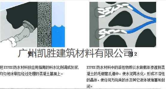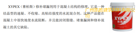 XYPEX(賽柏斯)產品是用加拿大XYPEX化學公司的專有技術生產的產品,它是有波特蘭水泥、硅砂和多種特殊的活性化學物質組成的灰色粉末狀無機材料。其工作原理是XYPEX特有的活性化學物質利用水泥混凝土本身固有的化學特性及多孔性,以水做載體,借助滲透作用,在混凝土微孔及毛細管中傳輸、充盈,催化混凝土內的微粒和未完全水化的成份再次發生水化作用,而形成不溶性的枝蔓狀結晶并與混凝土結合成為整體,從而使任何方向來的水及其他液體被堵塞,達到永久性的防水、防潮和保護鋼筋、增強混凝土結構強度的效果。