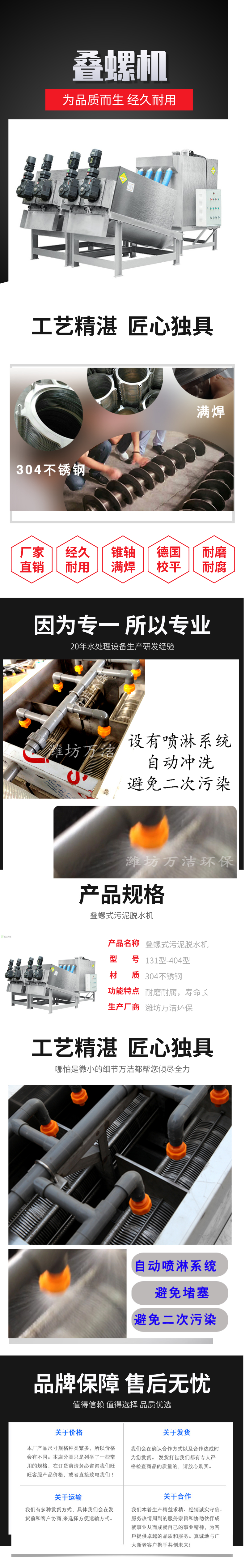 萬潔牌疊螺式污泥脫水機的優勢特點: