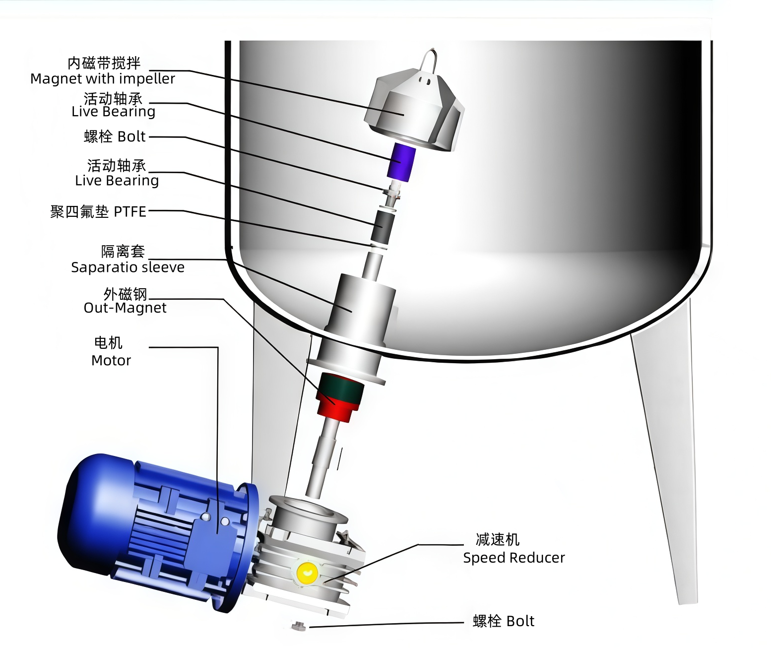 QHCJX系列下磁力攪拌器,是將磁力傳動(dòng)裝置安裝在罐體設(shè)備底部,底部安裝可實(shí)現(xiàn)罐體內(nèi)低液位攪拌,尤其在攪拌或反應(yīng)中介質(zhì)容易出現(xiàn)沉淀的工況下更能體現(xiàn)出該種方式的優(yōu)越性。QHCJX 下磁力攪拌器由于隔離套直接焊接在罐體底部,確保罐體完整性,傳動(dòng)軸短,結(jié)構(gòu)緊湊,易拆裝,易清洗,零泄漏,允許較高轉(zhuǎn)速,自潤(rùn)滑冷卻,可實(shí)現(xiàn)在線(xiàn)清洗,在線(xiàn)滅菌(CIP/SIP),結(jié)構(gòu)設(shè)計(jì)符合GMP要求。