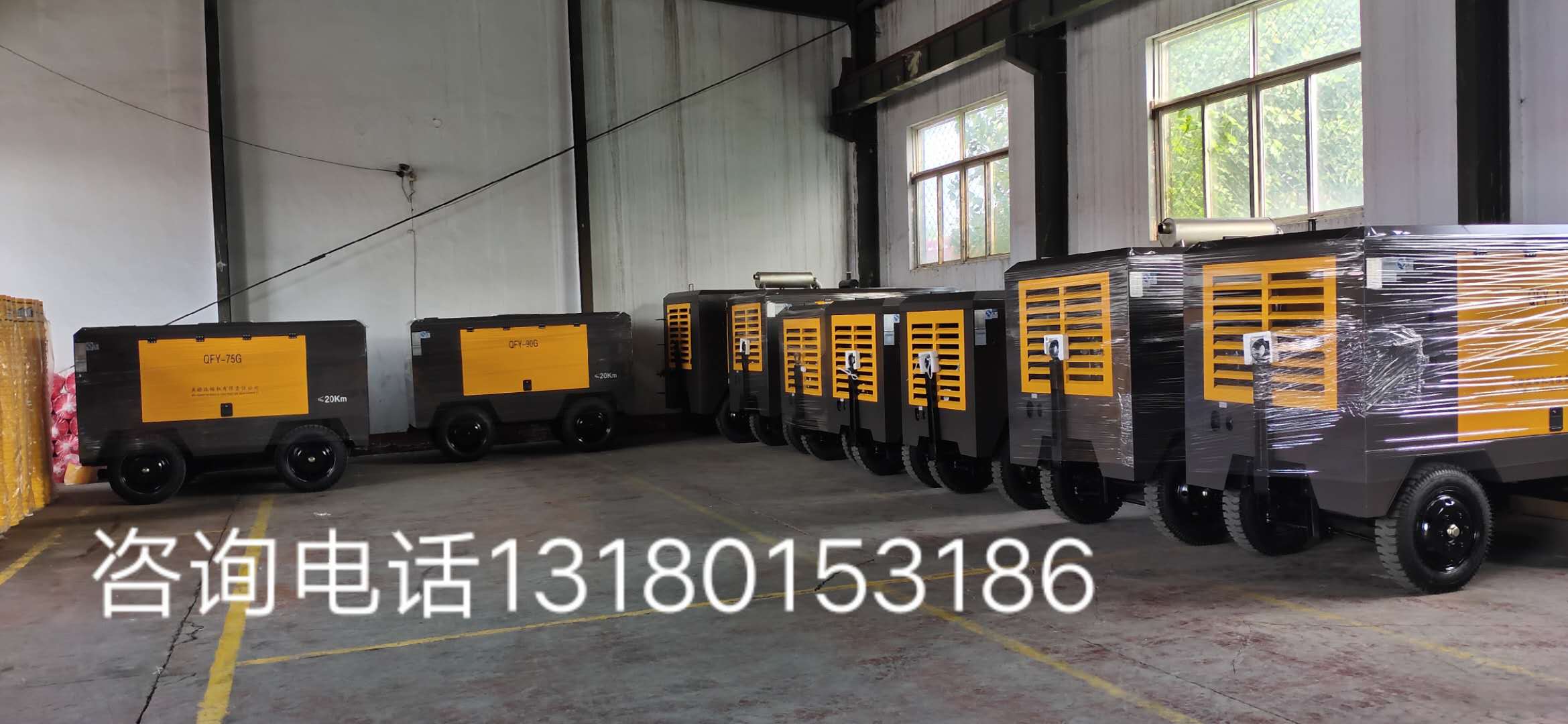 電動螺桿式空壓機,工作壓力8公斤(可調),四輪移動式螺桿空壓機,帶牽引,拖行方便,空壓機本身自帶緩沖罐,直接連接用氣設備,常用混凝體噴射機噴漿機護坡,修路帶動風鉆風鎬,兩個出氣口,戶外露天使用方便。