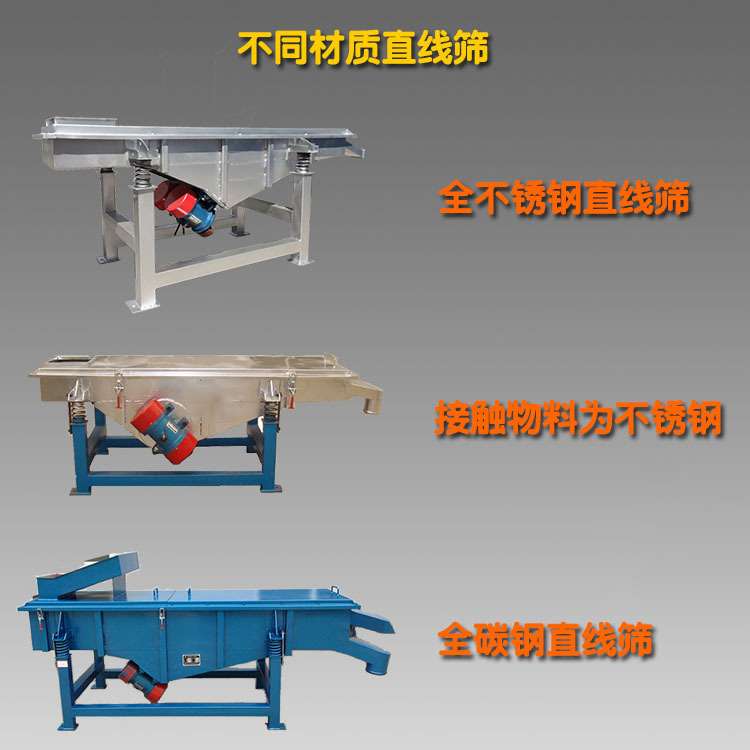 直線振動篩(不銹鋼直線篩)是在一般直線振動篩的基礎上將材質改為不銹鋼材料,非常實用于化工、食品、醫藥等行業,具有一定的耐腐蝕性。篩分精度高、處理量大、結構簡單、耗能少、噪音低、篩網使用壽命長、密封性好、極少粉塵溢散、維修方便。往往配合其他機械設備、如輸送機、提升機、破碎機等,完成整個流水線的自動化作業。不銹鋼直線振動篩用振動電機作為振動源,使物料在篩網上被拋起,同時向前作直線運動,物料從給料機均勻地進入篩分機的進料口,通過多層篩網產生數種規格的篩上物、篩下物、分別從各自的出口排出。因為物料運行軌跡為直線運動,因此稱為直線篩或直線振動篩。