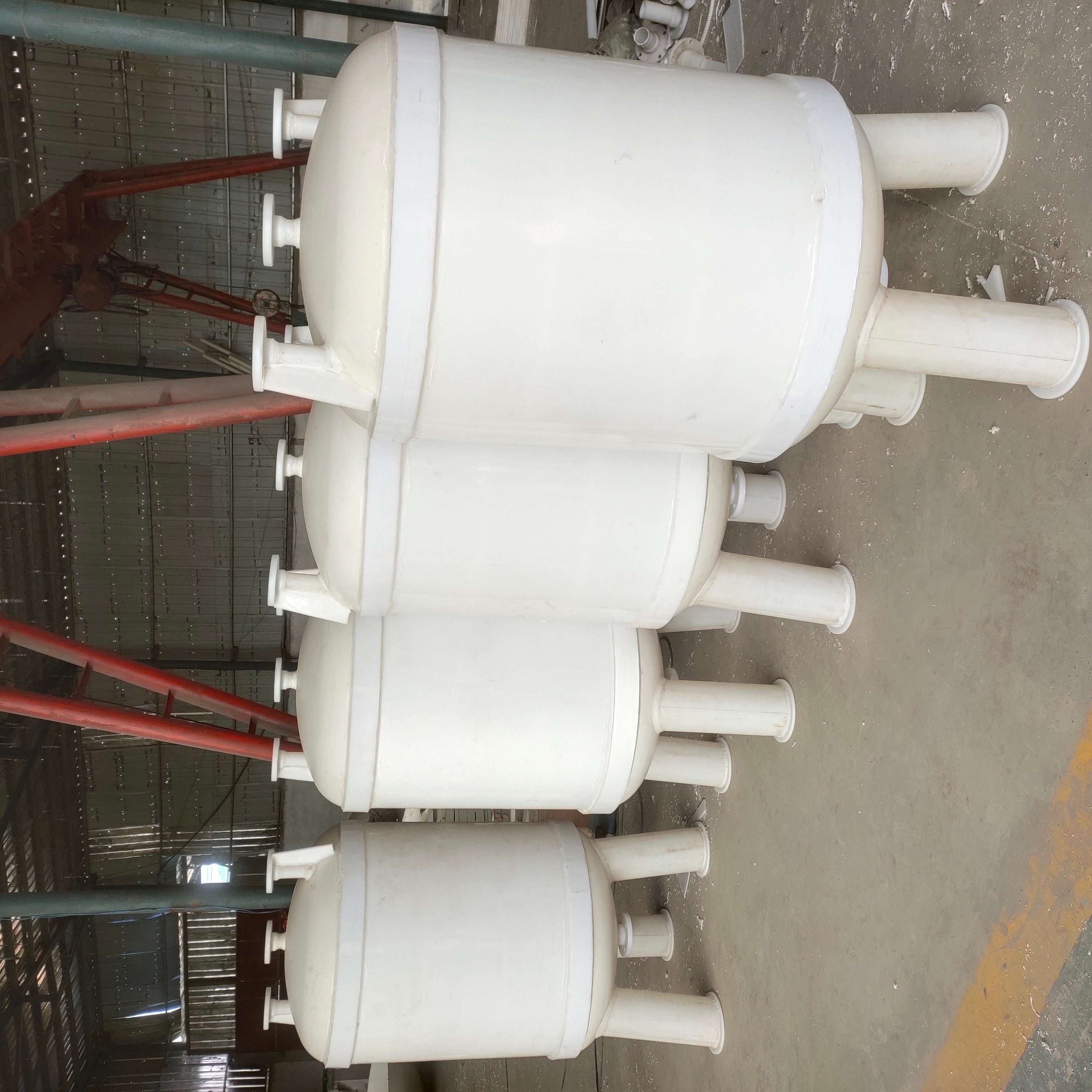 本公司以PP為材料制造的真空計量槽、緩沖罐、高位槽,主要適用于化工、石油、藥、食品、油脂、印染、冶金、、輕工等行業生產中物料的貯存、計量、緩沖等。本設備的結構形式分為立式和臥式兩種,其中立式又分為掛耳立式和支腳立式。由于它許多方面性能在同等使用條件下均其它材質制造的本設備,因此已應用于上述行業的工業生產中。目前我公司生產的本設備規格有:0.1立方—5立方,規格可另行設計制造。