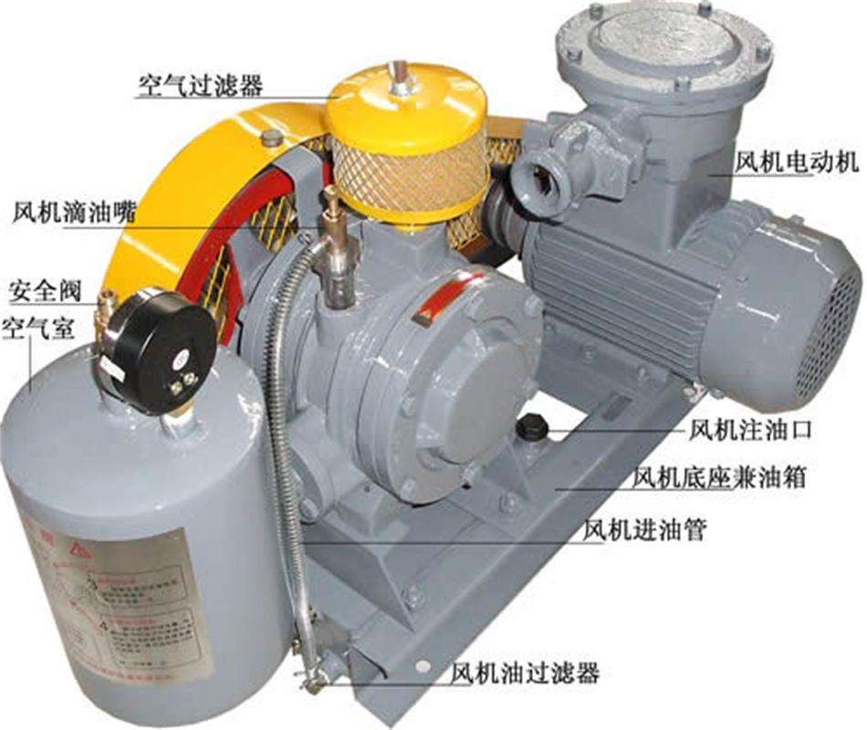 本產(chǎn)品壓力范圍:0.1-0.5kgf/cm2。主要由電機(jī)、空氣過濾器、鼓風(fēng)機(jī)本體、空氣室、底座(兼油箱)、滴油嘴等六部分組成。鼓風(fēng)機(jī)靠氣缸內(nèi)置的轉(zhuǎn)子偏心運(yùn)轉(zhuǎn),并使轉(zhuǎn)子槽中的葉片之間的容積變化將空氣吸入、壓縮、吐出。在運(yùn)轉(zhuǎn)中利用鼓風(fēng)機(jī)的壓力差自動將潤滑油送到滴油嘴,滴入氣缸內(nèi)以減少摩擦及噪聲,同時可保持氣缸內(nèi)氣體不回流。