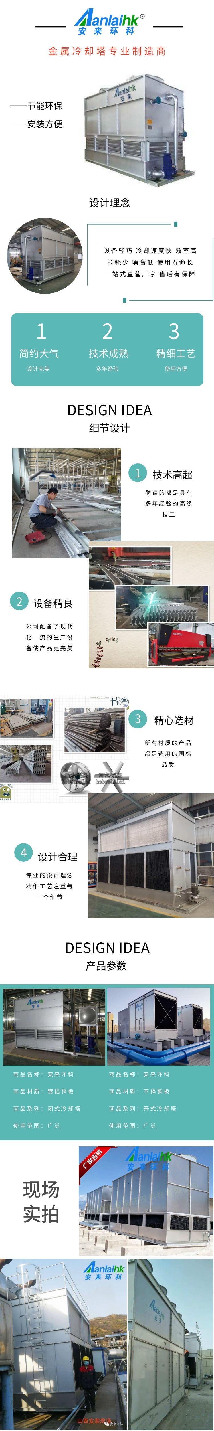 2、閉式冷卻塔適用于對循環水質要求較高的各種冷卻系統,在電力、化工、鋼鐵、食品和許多工業部門有應用前景。另一方面,與空冷式熱交換器相比,蒸發式冷卻塔利用管下側水的蒸發潛熱,使空氣側傳熱傳質顯著增強,也具有明顯的優點。