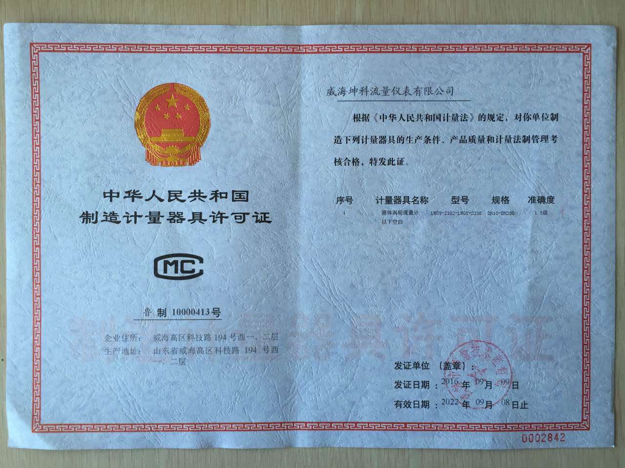 公司名稱:威海坤科流量儀表股份有限公司