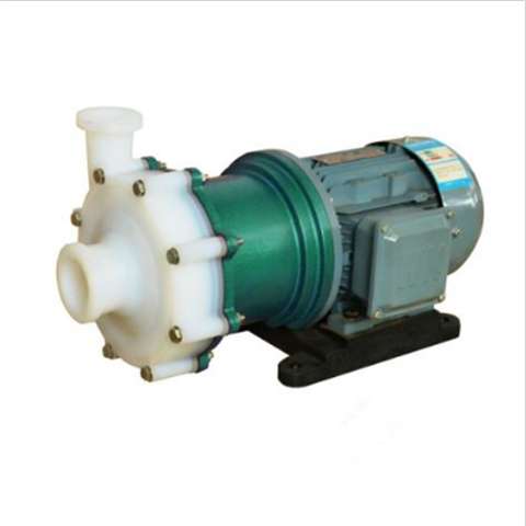 CQB-F型氟塑料磁力泵屬經典款耐酸堿磁力泵,該泵應用現代磁力學原理,利用永磁體實現無接觸間接傳動的一種化工流程泵。當電機帶動外轉子(即外磁鋼)總成旋轉時,通過磁場的作用磁力線穿過隔離套帶動內轉子(即內磁鋼)總成和葉輪同步旋轉,介質完全封閉在靜止的隔離套內,從而達到無泄漏抽送介質的目的,徹底解決了機械傳動泵的軸封泄漏,是全密封、無泄漏、無污染的化工磁力泵。