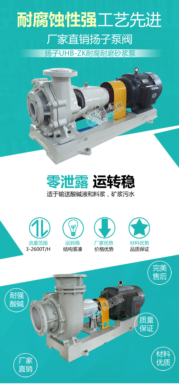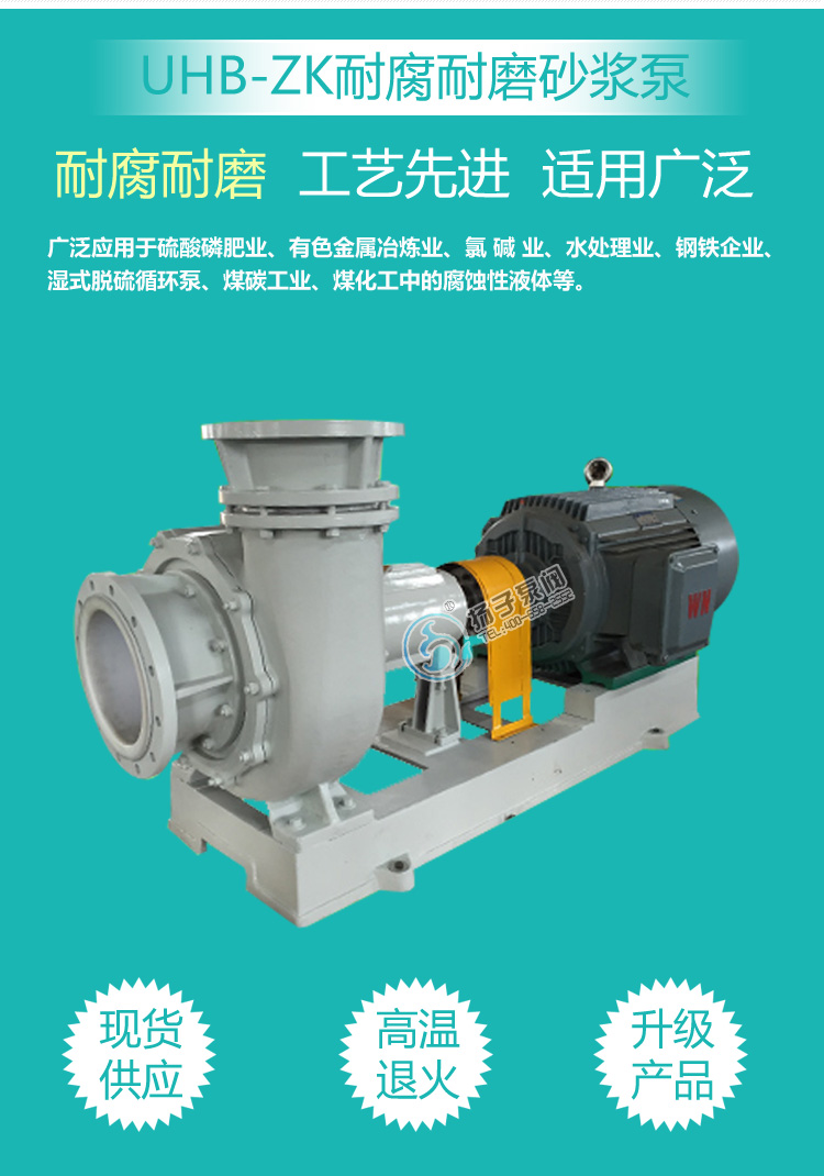 UHB-ZK型耐腐耐磨砂漿泵也可以叫"料漿泵"、“脫硫泵”、“壓濾機泵”,屬于懸臂式單級單吸離心泵,是專為輸送含有細顆粒的腐蝕性介質而設計開發的,該泵采用鋼襯超高分子量聚乙烯(UHMW-PE)制成,該材質是目前新一代的泵用耐腐耐磨工程塑料,其最大的優點是在所有的塑料中它具有優越的耐磨性、耐沖擊性(尤其是耐低溫沖擊)、抗蠕變性(耐環境應力開裂)和極好的耐腐蝕性。