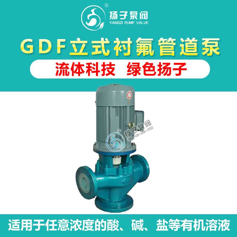 1、GDF型立式襯氟管道泵為立式結構,進出口口徑相同,且位于同一中心線上;
