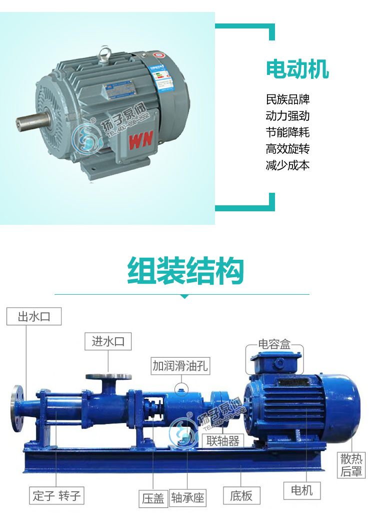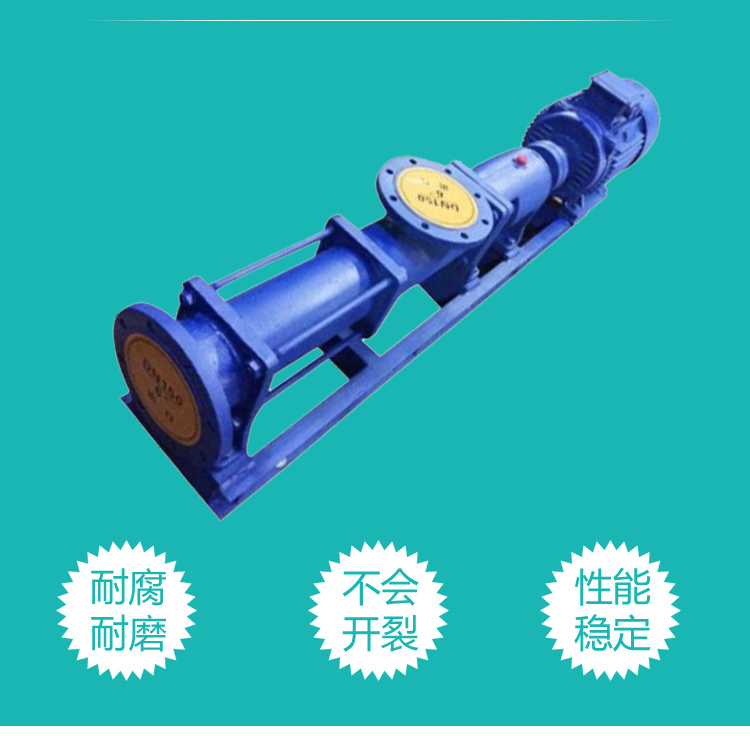 G型單螺桿泵特點是對介質的適應性強、流量平穩、壓力脈動小。壓力為0.6∽1.2MPa,可滿足用戶對單螺桿泵的不同需求。我單位生產的泵,質量可靠,質保一年,同時確保備件的正常供應。本單位熱忱為廣大用戶服務,接受用戶對特殊要求單螺桿泵的設計和制造任務;該二部件的特殊幾何形狀,分別形成單獨的密封容腔,介質由軸向均勻推行流動,內部流速低,容積保持不變,壓力穩定,因而不會產生渦流和攪動;每級泵的輸出壓力為0.6MPa,揚程60m(清水);因定子選用多種彈性材料制成,所以這種泵對高粘度流體的輸送和含有硬質懸浮顆粒介質或含有纖維介質的輸送,有一般泵種所不能勝任的特性,其流量與轉速成正比。