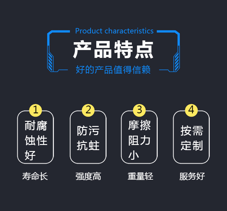 公司主營一體化泵站、儲罐、纏繞化糞池、纏繞管道、夾砂管道、管件、SMC新農村改造化糞池、立篦式雨水口,污水池蓋板、脫硫塔、陽極管等各種玻璃鋼制品。廣泛應用于鄉村建設、市政工程、化工、電力、航天、國防、醫藥等行業。