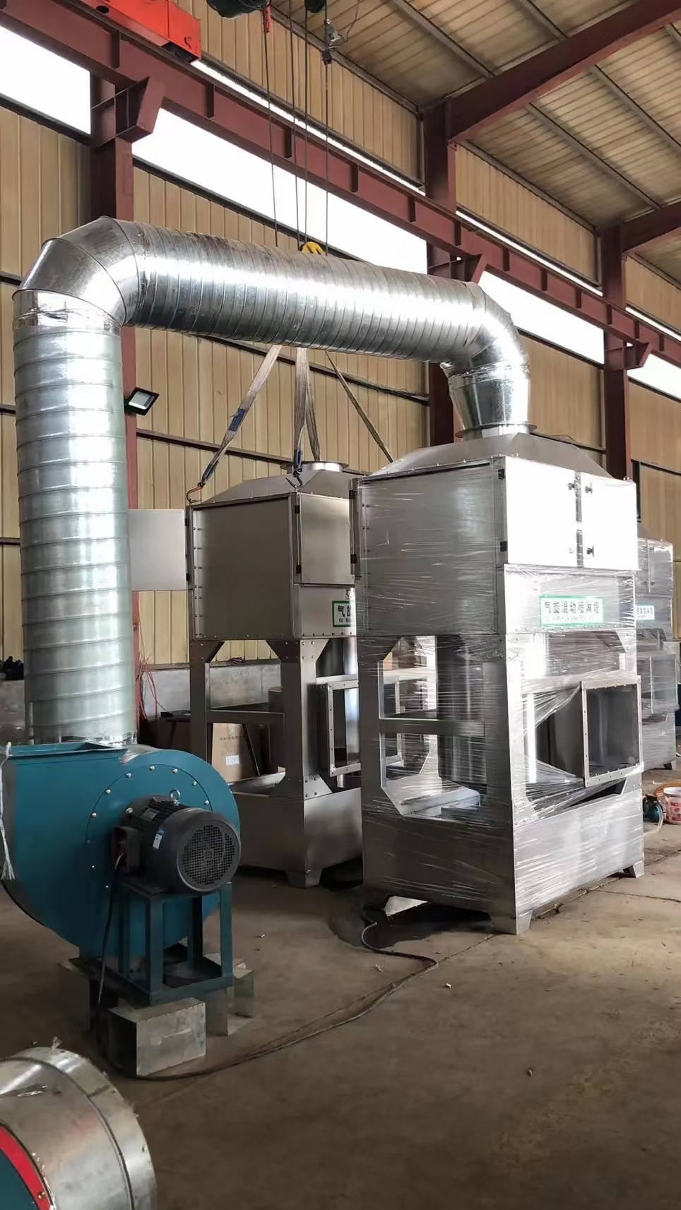 產品采用流體力學技術,避免水泵及噴頭的堵塞,大大提高生產效率,其中水池的水可循環使用,避免產生二次污染造成的困擾,更節約了水資源;氣旋塔內安裝有若干個“圓形旋流桶”和高效除霧板。旋流桶內放有實心填料球,上層的除霧板用來凈化水霧,達到脫水霧的目的,含塵氣體在塔內旋流上升、并在各板上與由塔頂進入的液體旋流接觸,完成除塵任務;通過離心力的作用,廢氣中的大顆粒沉入水池, 之后由人工撈出清理機殼,這樣氣體得到凈化,達標排放,同時氣旋塔內的水可以繼續循環使用。