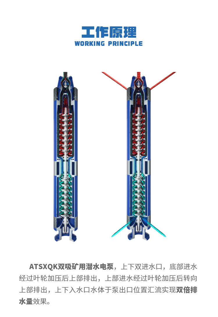 傳統潛水泵多為單吸結構,而雙吸設計通過對稱葉輪布局,實現了雙向進水。