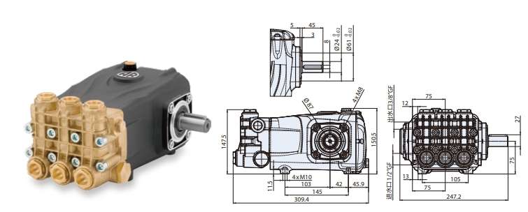 特點(diǎn):緊湊輕量化,適合噴霧、小型清洗機(jī)