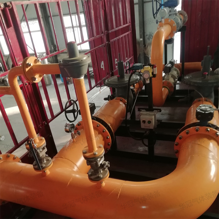 2、連接進、出口管的燃氣管道需預埋,調壓箱吊裝或撬裝到法蘭連接部位,裝好密封墊,連接好法蘭即可。