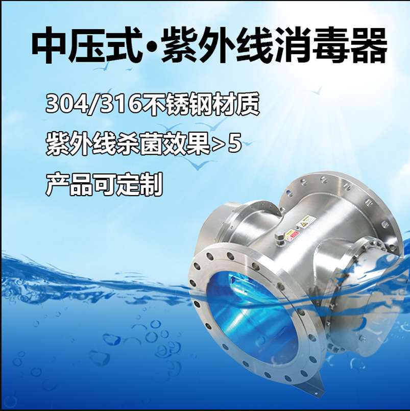 中壓紫外線消毒器泳池市政污水養殖學校醫院管道式殺菌水處理設備