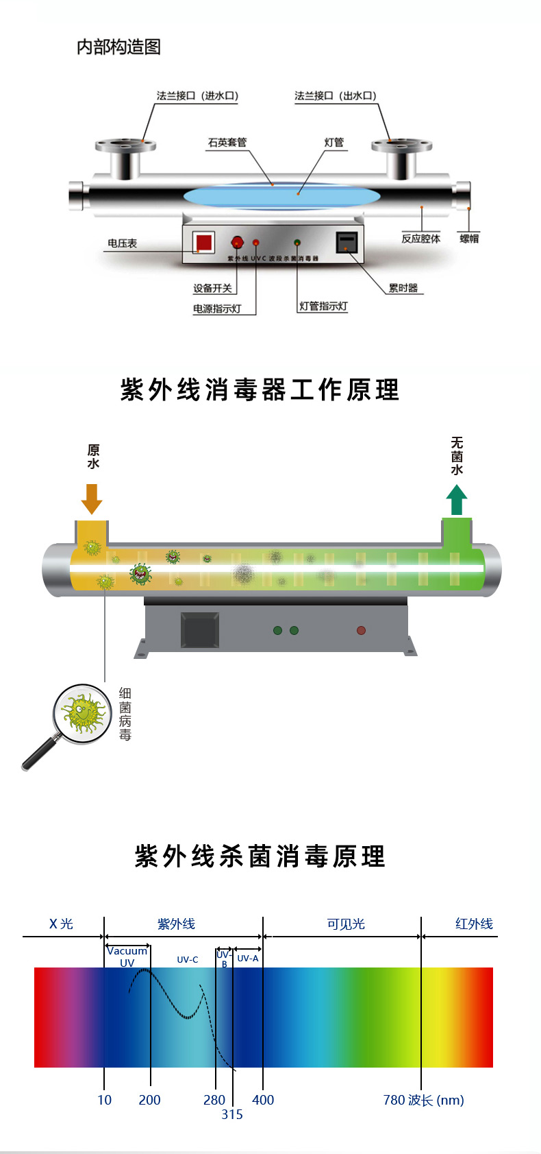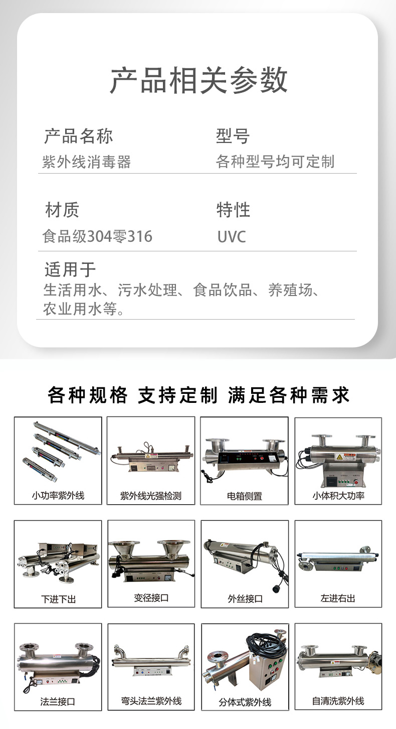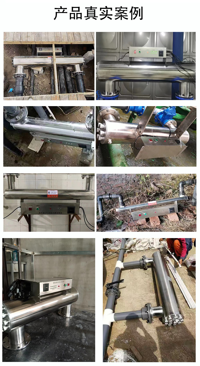 紫外線消毒器應用范圍廣,像小區供水,二次供水,養殖場,污水處理等等,殺菌率高達99.9%,效率高