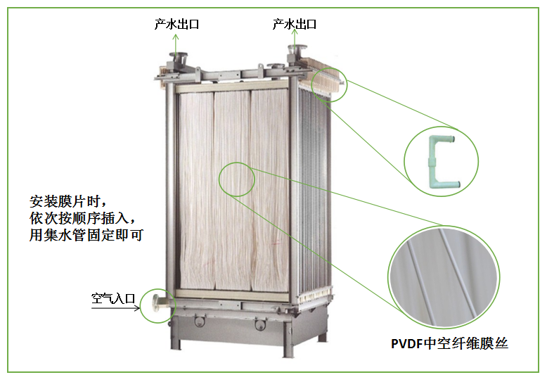 3、膜絲采用耐腐蝕pvdf材質組成,實現了較強的耐藥性,可以長期使用,反復清洗。