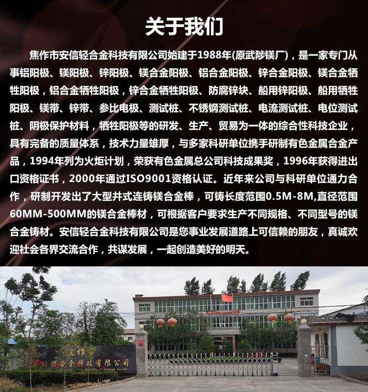 在陽(yáng)極保護(hù)領(lǐng)域,鋅合金、鋁合金陽(yáng)極已經(jīng)在包括海洋鋼鐵設(shè)施、海上平臺(tái)、船舶、輸油管路等諸多領(lǐng)域取得了極好的經(jīng)濟(jì)效益和社會(huì)效果。但是,在土壤干燥條件下,效果并不明顯,且表面腐蝕層不易溶解、脫落,阻抗增長(zhǎng),電流效率下降。而鎂陽(yáng)極操作電位可達(dá)-15V,比之鋁陽(yáng)極-1.1V,鋅陽(yáng)極-0.8V均優(yōu),電容量是鋅陽(yáng)極的1.9倍,且電流輸出穩(wěn)定,表面腐蝕層易溶解、松落,電效一般都達(dá)到50%以上。