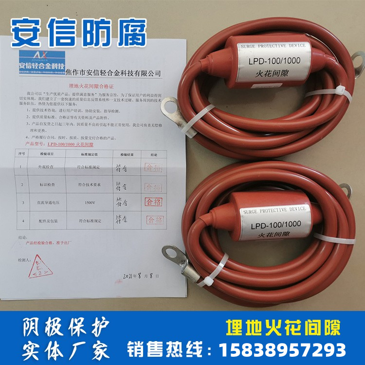 火花間隙(埋地型)絕緣接頭保護(hù)器等電位(火花間隙)用途1用于跨接在輸氣管道,輸油管道的絕緣接頭或絕緣法蘭的兩斷,防止兩端雷電過(guò)電壓或操作過(guò)電壓擊穿絕緣接頭。 2.通過(guò)該產(chǎn)品對(duì)輸氣管道,輸油管道接地,將管道上的過(guò)電壓限制在比較低的幅值范圍內(nèi),防止管道上的過(guò)電壓對(duì)接觸人的傷害。3用于建筑,鐵路,石化等系統(tǒng)兩個(gè)獨(dú)立的接地體之間的等電位連接。