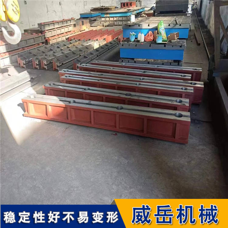 T型槽地軌的質量檢測:T型槽地軌應采用細顆料的灰口鑄鐵或合金鑄鐵制造。T型槽地軌工作外表應無有砂孔、氣孔、裂紋、夾渣及縮松等鑄造問題。各種鑄造外表應型砂、且外表平整,涂漆結實。各棱邊應修鈍。在精度等級低于"00"級的平板工作面上,關于直徑小于15mm的砂孔允許用相同的資料梗塞,其硬度應低于四周資料的硬度。在工作面上梗塞的部位應不多于四處,其互相之間的間隔應不小于80mm.