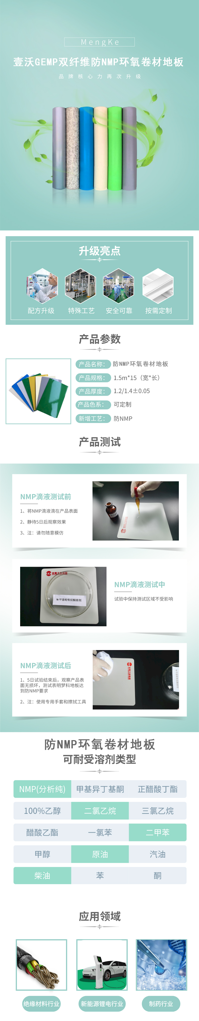 壹沃GEMP雙纖維防NMP環氧卷材地板 耐腐蝕