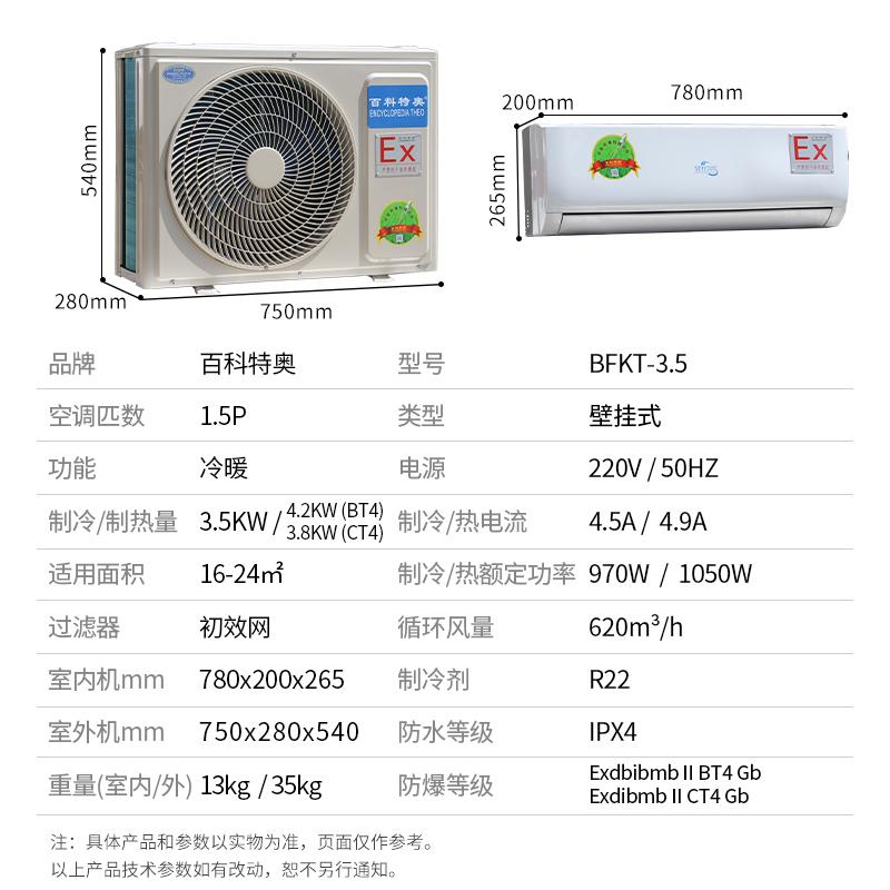 BFKT-3.5(掛式1.5P防爆空調)制冷量:3.5kw制熱量3.8kw適用面積16-24m2