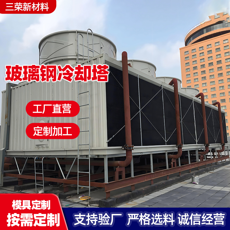 開式冷卻塔是利用水和空氣的接觸,通過蒸發作用來散去工業上或制冷空調中產生的廢熱的一種設備?;驹硎牵焊稍铮ǖ挽手担┑目諝饨涍^風機的抽動后,自進風網處進入冷卻塔內;飽和蒸汽分壓力大的高溫水分子向壓力低的空氣流動,濕熱(高焓值)的水自播水系統灑入塔內。當水滴和空氣接觸時,一方面由于空氣與水接觸的直接傳熱,另一方面由于水蒸汽表面和空氣之間存在壓力差,在壓力的作用下產生蒸發現象,即通過與不飽和干空氣熱傳遞帶走水的顯熱,部分水蒸發將水中的潛熱帶走,從而達到給冷卻水降溫的目地。