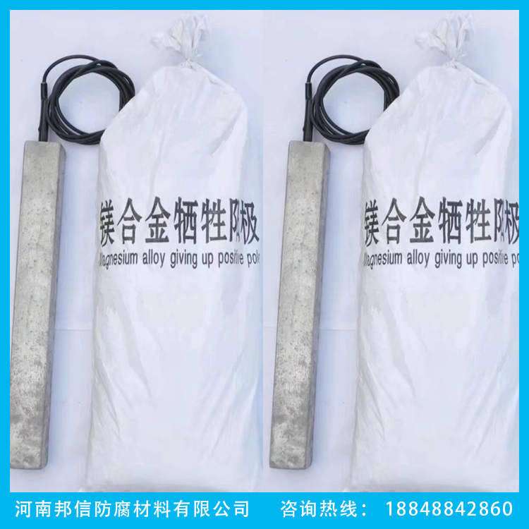 預包裝鎂合金犧牲陽極(預包裝鎂陽極)主要由一只鎂陽極和熱收縮套管、電纜線組成,陽極體采用在陽極體周圍裝上所要求成份的填包料。