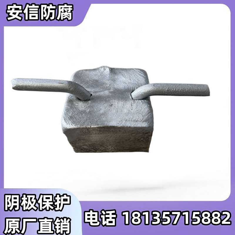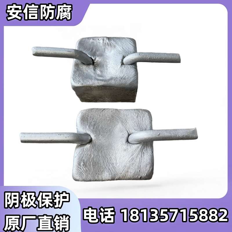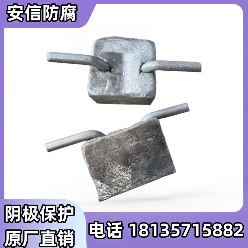 犧牲陽極保護法是利用電化學原理,由活潑金屬(鋅、鋁等)在海水介質中與被保護材料構成電性連接,自身作為陽極被加速腐蝕,使被保護材料成為陰極而得到保護。常用的犧牲陽極材料主要有鋅基、鋁基和鎂基三種。用犧牲陽極保護金屬不需要外加電源、不會干擾臨近金屬設施、電流分散能力好、易于管理和維護,在防腐蝕工程中得到了廣泛的應用。鎂犧牲陽極比其他犧牲陽極密度小、電容量大、電位負、極化率低對鋼鐵的驅動電壓大,特別適用于電阻率較高的土壤和淡水中金屬中件的保護。