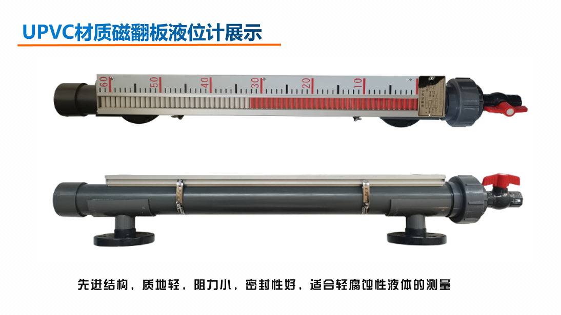 UHZ型UPVC磁翻板液位計,適用于工業生產中各種防腐貯罐內液體介質的液面指示和測量。對工作溫度、壓力不高的輕腐蝕溶液尤其適用。UPVC磁翻板液位計結構先進,質地輕、阻力小,密封性好,經濟實惠。