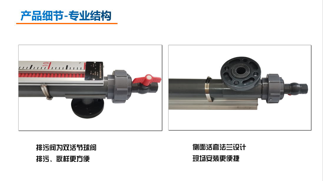 1、主體管Φ63*3.5活套法蘭設計,適應輕腐蝕性的液位測量。