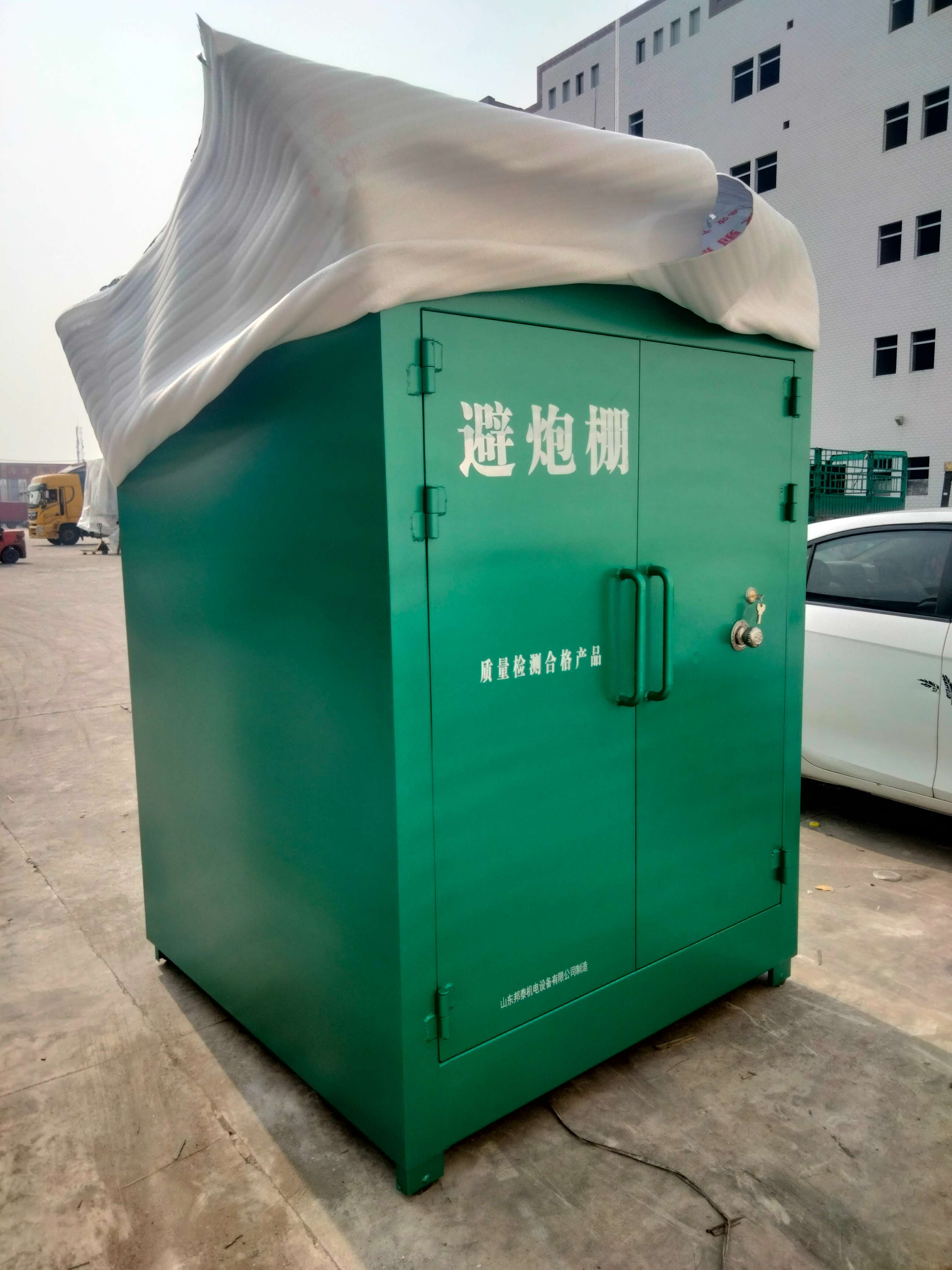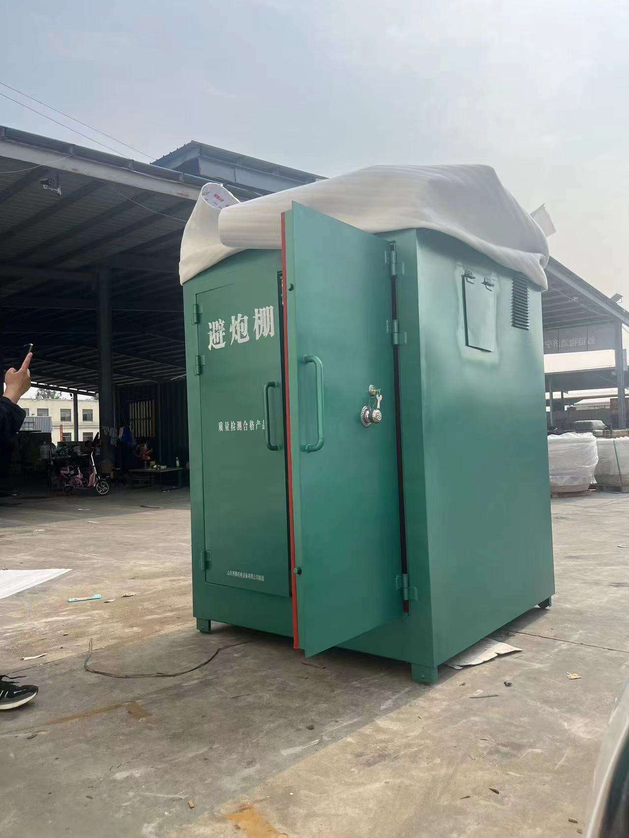 避炮棚的外層通常由7-8毫米厚的防爆鋼板制成,內部有10毫米厚的絕緣木板,最里面是一層2毫米厚的防靜電阻燃氈。避炮棚耐腐蝕且適用于野外環境,能夠有效阻擋爆破中的飛石,保障工作人員的安全。柜子底部有4個支撐腿,帶有輪子方便移動搬運。為了方便裝卸,頂面四角可安裝吊環,柜體兩側還設有通風口及不銹鋼防蚊網。此外,還單獨設置有一個觀察的小孔,可用于觀察外面的環境情況。性能穩定,型號可根據需求定制,尺寸超2米深時,還可以加龍骨固定,增加穩定性。