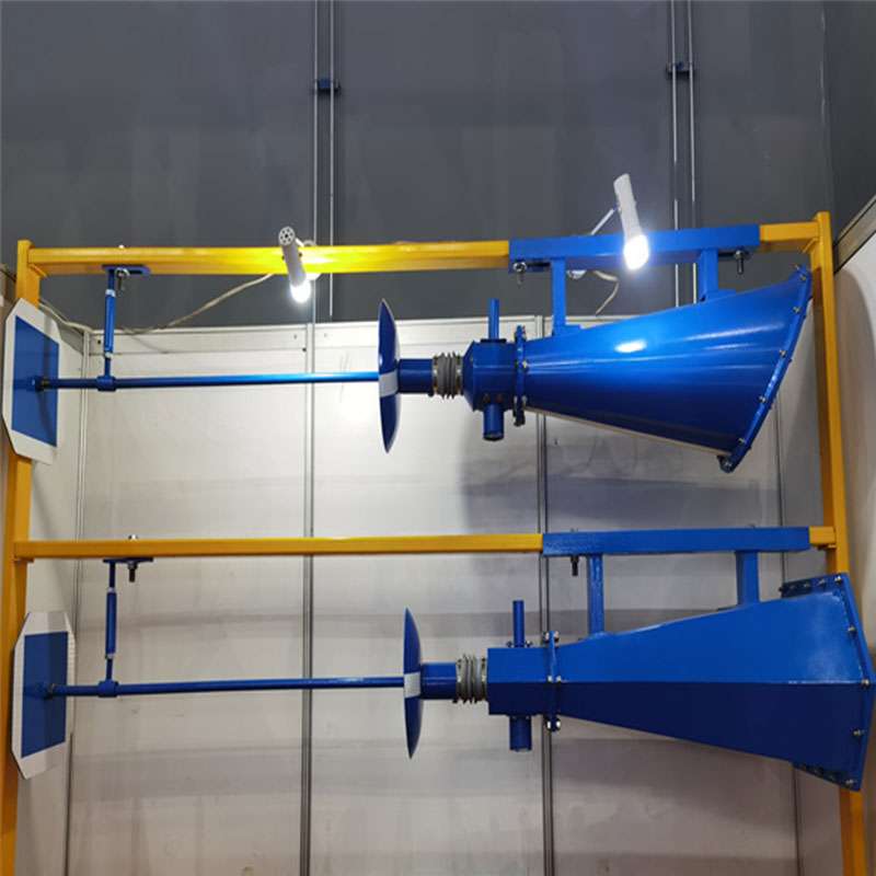煤礦井下礦用自動隔爆裝置采用超細干粉作為滅火介質,驅動裝置為純機械結構,反應靈敏,安裝、維修、維護方便快捷。經過安標中心模擬實驗驗證,可迅速熄滅隔爆火焰,降低火區溫度,隔爆效果穩定可靠。 裝置采用錨桿連接的方式固定在巷道頂板上方,并根據巷道情況選擇裝置的布置方式、安裝數量等。沖擊 波接收器面向爆炸產生的沖擊波和火焰的蔓延方向。沖擊波先于火焰到達沖擊波接收器,并使觸發裝置動作,隔爆介質噴出,形成高效能霧狀隔爆區域,該霧狀隔爆介質可懸浮足夠時間以等待火焰到來并使之熄滅,起到阻止爆炸蔓延的作用。