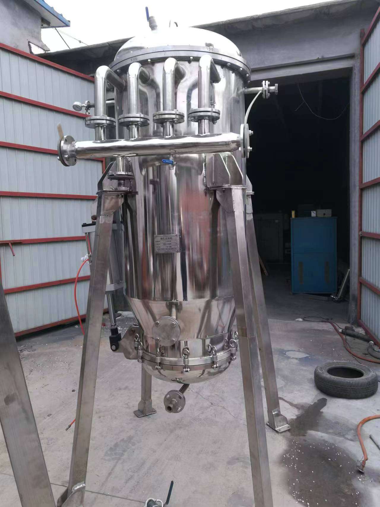 產品特點:過濾精度高,使用壽命長,用“氣-水混合流體”快速反吹法,可對微孔管進行高效、簡單的物理再生,微孔管可長期使用,耐腐蝕性能優越及排渣操作便捷,啟閉快速穩定可靠。在密閉機體內懸掛微孔濾芯,具有單位體積內過濾面積大,占地面積小的優點,機體設有主過濾區能將物料快速過濾完,輔助過濾區能將機內剩余物料一次過濾完,不留殘液。
