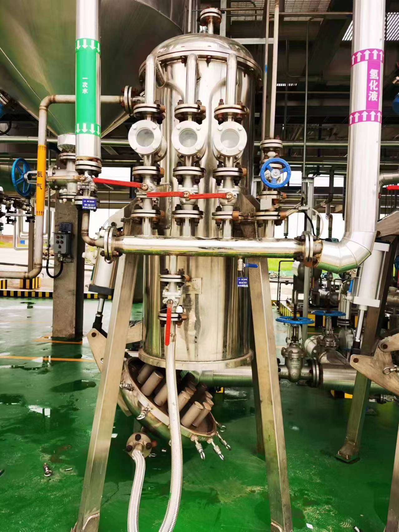 產品原理:在生產過程中,鈀碳參與化學反應后,應及時將鈀碳與反應溶液分離,使鈀碳繼續參加下一批反應。如果不完全分離,不僅影響化學反應物的質量,也由于鈀碳的損失使得生產成本增加。固體鈀碳的顆粒很細,一般濾布很難將其完全分離,針對鈀碳的特點,我公司生產的鈀碳過濾器密閉安全,元件強度好,再生方便,避免了多次開啟過濾器。過濾芯可以采用鈦或不銹鋼粉末燒結濾芯或PE燒結濾芯,過濾完畢后排漿到上游儲罐套用。