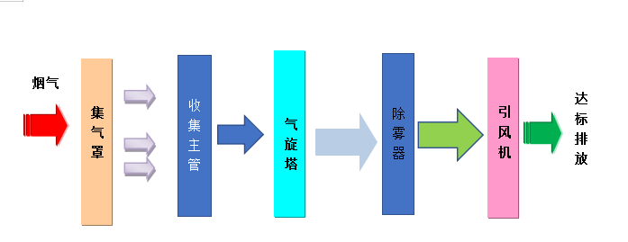 車間各工藝段生產時,通過各類集氣罩收集后通過主管在引風機的作用下進入氣轉塔,去除環境熱氣、微塵及有機物,然后通過風機加壓經過排放煙囪高空排放。
