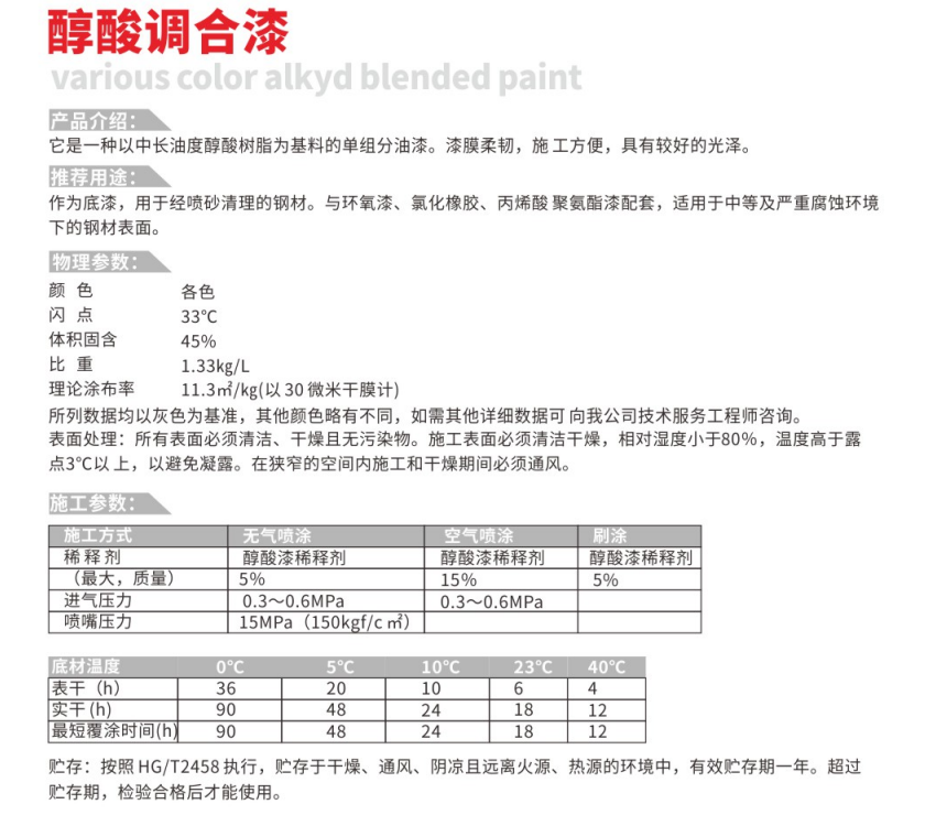 產品特性:漆膜堅韌豐滿,在常溫下自然干燥。