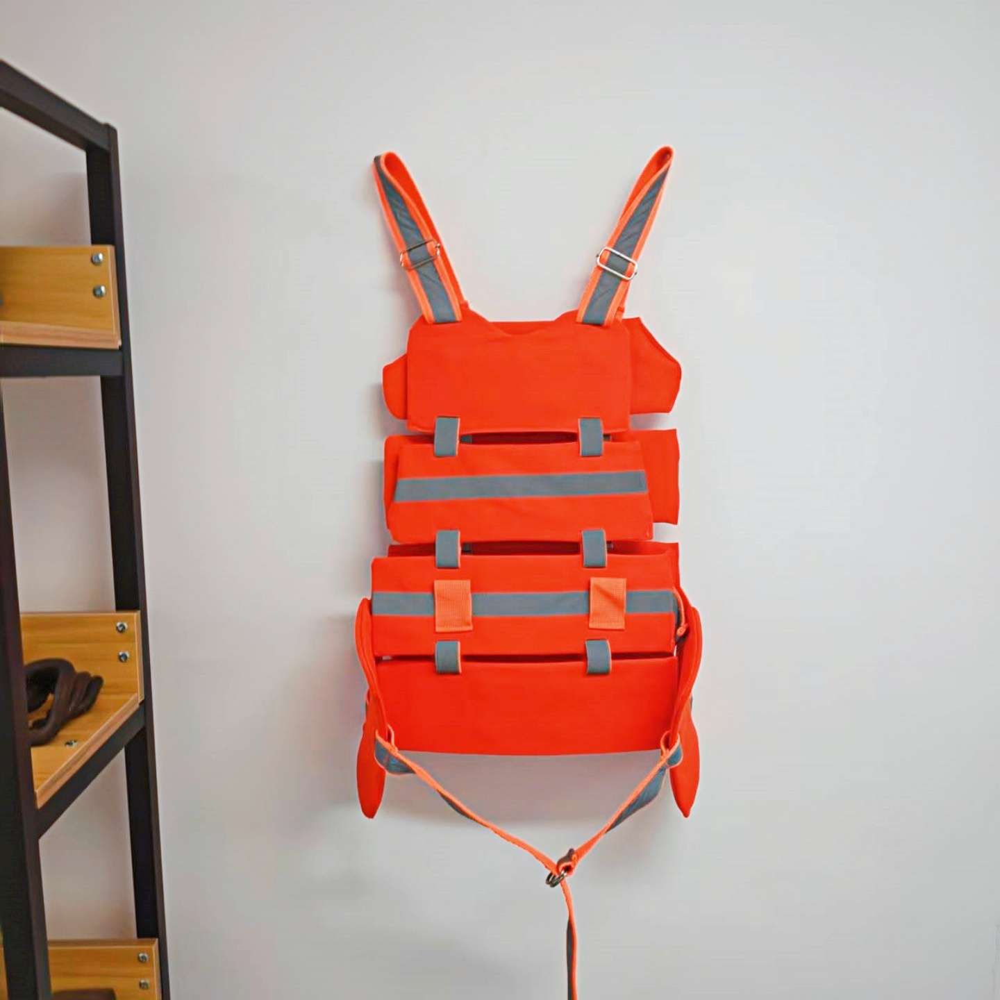 第一步調尺寸:把背夾放平,肩帶比自己肩頸到后背的距離略長一點,腰帶能插進兩指為宜。