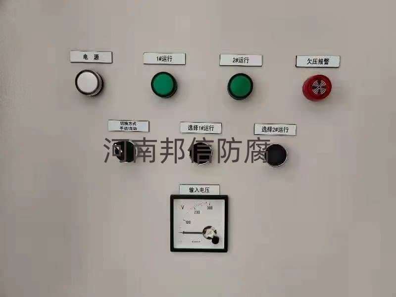 電位閉環(huán)調(diào)節(jié):通過參比電極實(shí)時(shí)監(jiān)測被保護(hù)金屬電位(如埋地管道的管地電位),將信號(hào)反饋至比較放大器,與設(shè)定值(如 - 1.5V)進(jìn)行對(duì)比。若存在偏差(ΔV),系統(tǒng)自動(dòng)調(diào)整晶閘管整流電路的導(dǎo)通角,改變輸出電流(I),直至電位穩(wěn)定在目標(biāo)值。