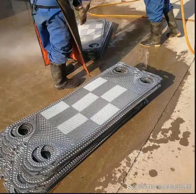 物理沖洗:先用高壓水或軟化水沖洗板片,清除表面浮塵、泥沙等雜質,確保酸液能充分接觸垢層。