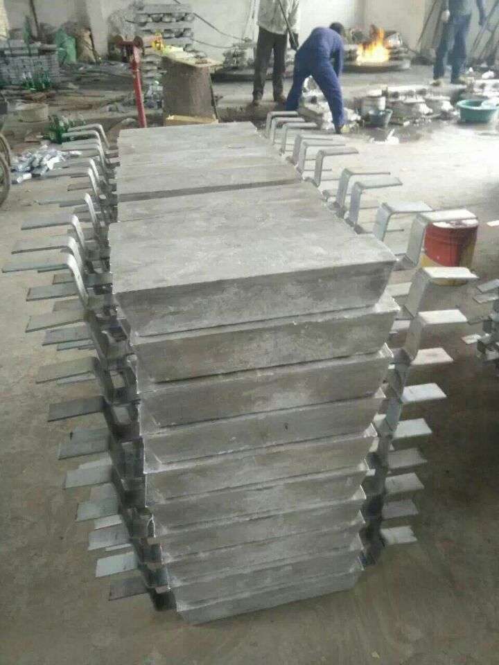 主要用途:鋁-鋅-銦系合金犧牲陽極適于海水介質中的船舶、機械設備、壓載水艙、儲罐內壁、濱海設施、海底管道、 碼頭鋼樁、海洋平臺、電纜等設施金屬防腐蝕的陰極保護。