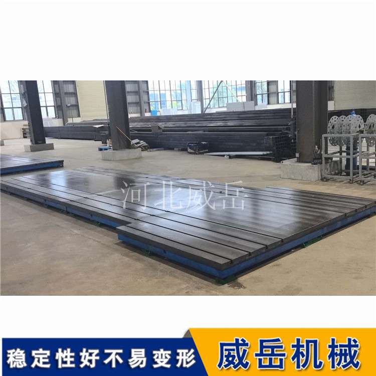 承載力與韌性:這是鋼板平臺(tái)的強(qiáng)項(xiàng)。在相同厚度下,鋼板的抗拉強(qiáng)度和抗沖擊能力遠(yuǎn)高于鑄鐵。如果你要組裝一臺(tái)幾十噸甚至上百噸的重型設(shè)備,或者經(jīng)常要吊運(yùn)重物磕碰平臺(tái),鋼板平臺(tái)比較安全,因?yàn)樗粫?huì)像鑄鐵那樣脆裂,比較多是變形。