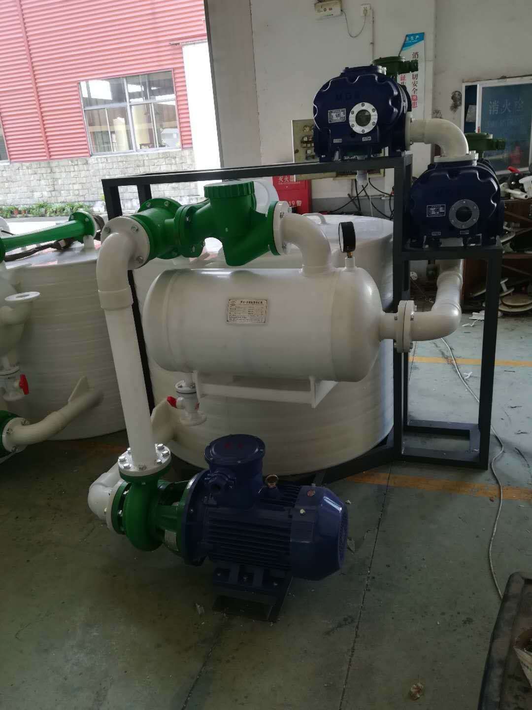 羅茨水噴射真空機(jī)組,根據(jù)用戶工藝上面真空度的要求,可設(shè)計(jì)一級(jí)羅茨真空泵,二級(jí)羅茨真空泵,和三級(jí)羅茨真空泵,名稱羅茨水噴射真空機(jī)組,在生產(chǎn)工藝上需要再進(jìn)一步提升真空度,而設(shè)計(jì)的高真空設(shè)備,根據(jù)工藝要求和需要,水箱內(nèi)可配置5m2至20m2石墨改性冷卻盤管,能緩解降低系統(tǒng)過來的水溫,保持工藝所需要的真空度標(biāo)準(zhǔn)要求。
