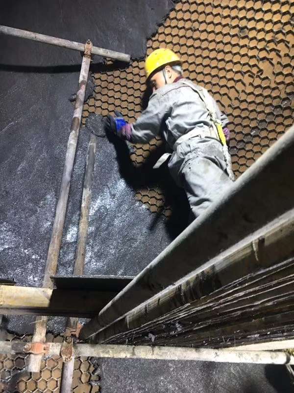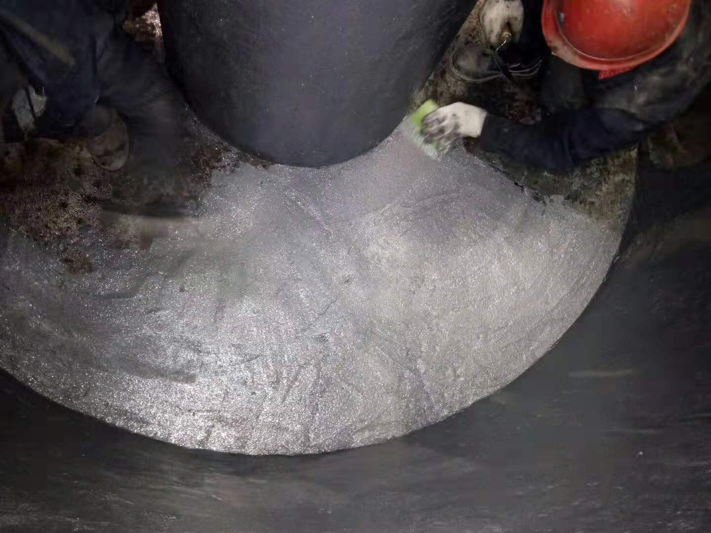②將配置好的耐腐蝕涂層均勻的刮涂于吸收塔增效環待施工區域,并最少刮涂兩遍耐腐蝕防護涂層,整體厚度約1.5mm左右;