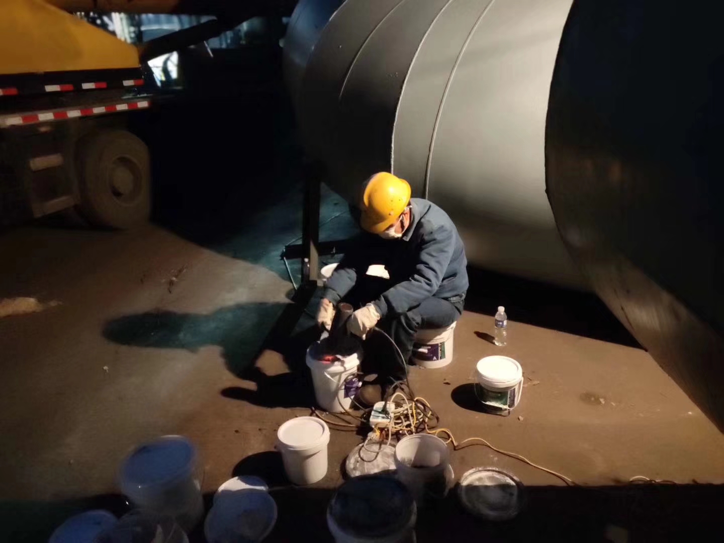 1、表面處理:對需處理部位進行粗化處理,角磨機打磨或噴砂等;對粗化處理過的表面進行清洗;處理過的表面應是粗化的干燥新鮮基材表面,并且應無油污、無粉塵。